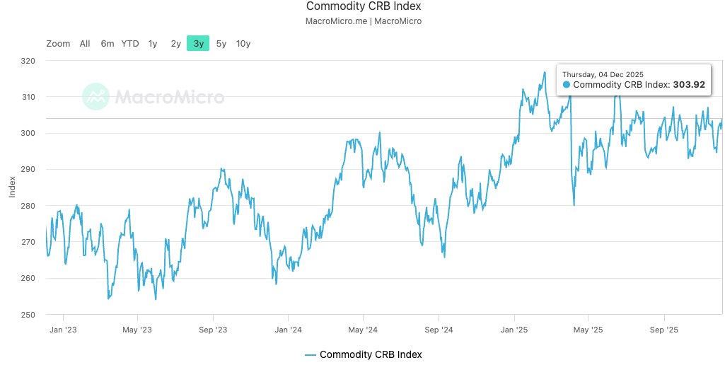 Why it matters: The CRB Index is still holding tight, continuing to show a trend of stability. This remains a good time to lock in pricing with your suppliers and evaluate your inventory on hand.